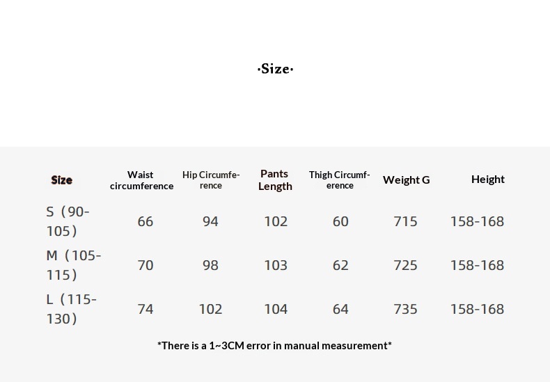 Sizes: S (90–105 cm), M (105–115 cm), L (115–130 cm)